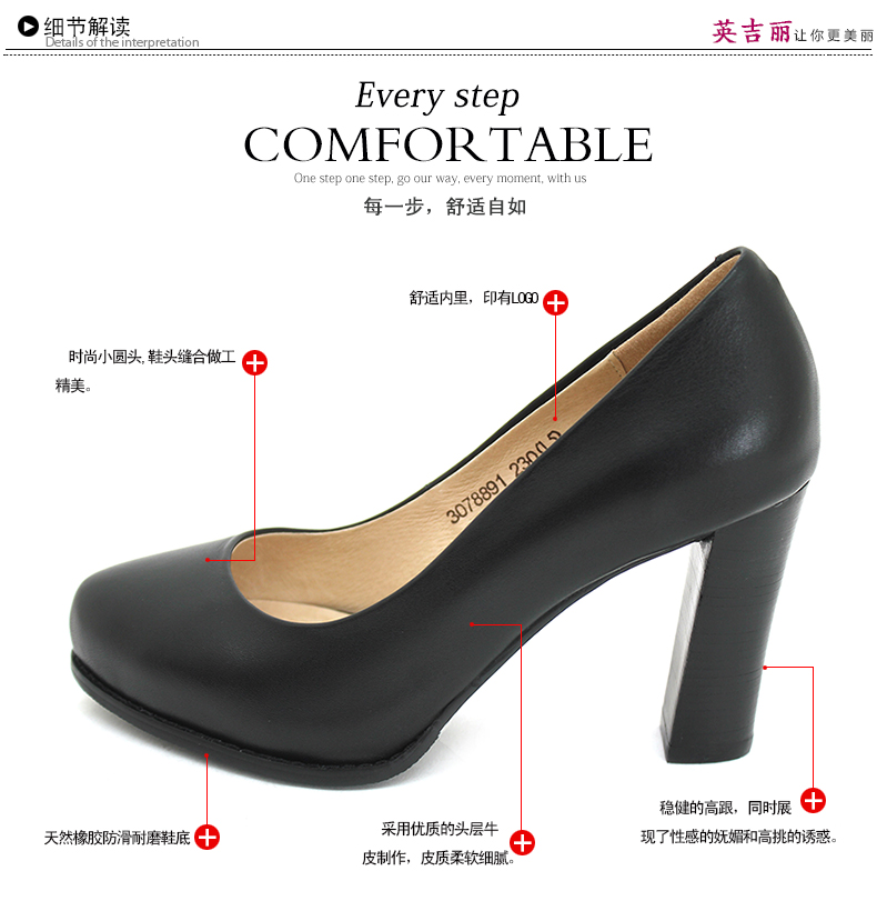 产品名称: 职业浅口粗跟高跟女单鞋