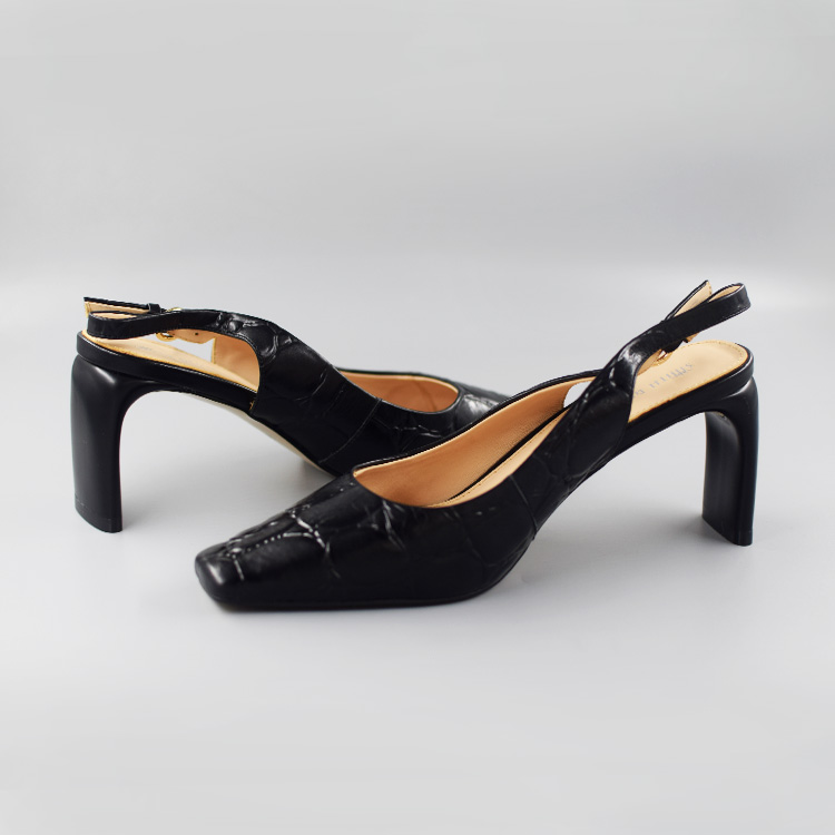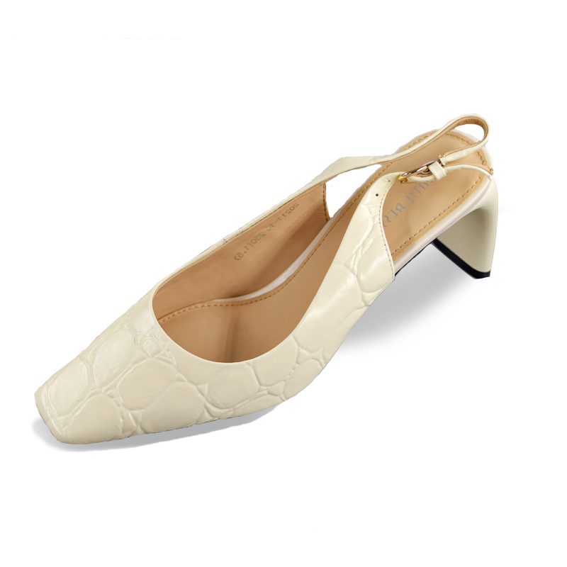 产品名称: 夏季新款高跟鞋方头扁跟压纹鸵鸟纹牛皮包头凉鞋女SE20211-10